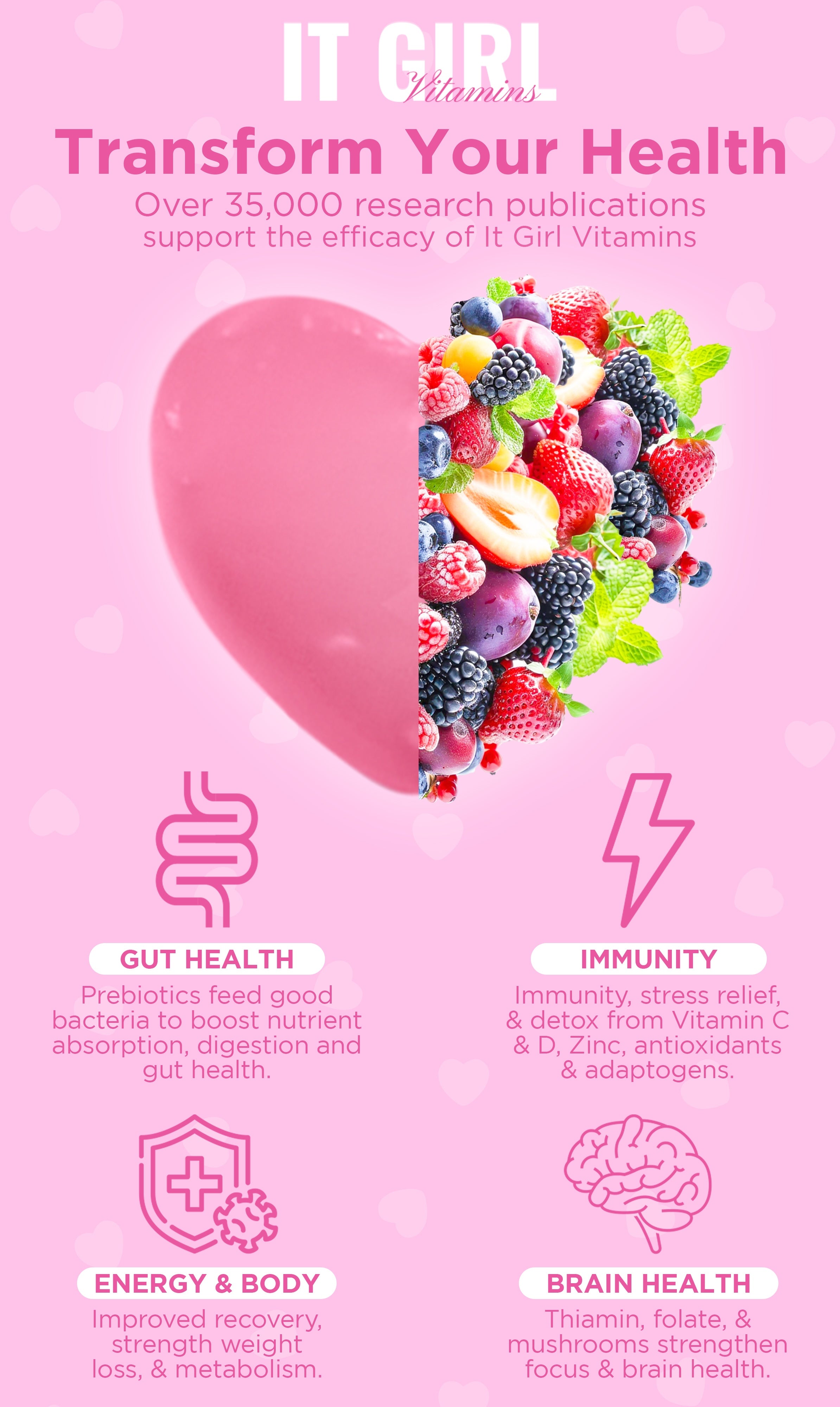 It Girl Vitamins was founded with a mission to transform lives by making health and wellness both enjoyable and effective for everyone. Our approach blends the latest scientific and technological breakthroughs with the genius of nature to create products that are proven to deliver lasting results.